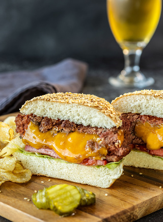 - Top 1 patty with 2 slices of Cheddar, overlapping them to cover the patty, but leave a ½-inch border.
