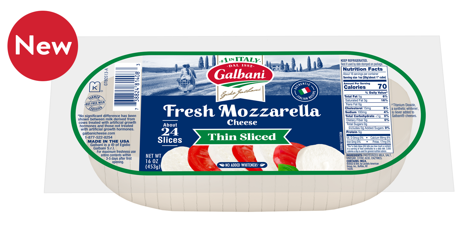 The same award-winning recipe now comes with more usable slices and less waste than ever before. That means there are more savings in every log. Try it and see why you’ll like the new Galbani Thin Sliced Mozzarella even better.