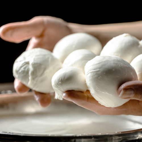 In Italian, fior di latte means “flower of the milk.” It’s an expression indicating a Fresh Mozzarella has been made exclusively with high-quality cow’s milk. Traditionally, fior di latte is a pasta filata cheese created by heating, kneading, and stretching the curd to achieve the ideal structure. All Galbani Fresh Mozzarella is proudly crafted in the fior di latte tradition, using the pasta filata method for a taste and texture chefs and customers love.